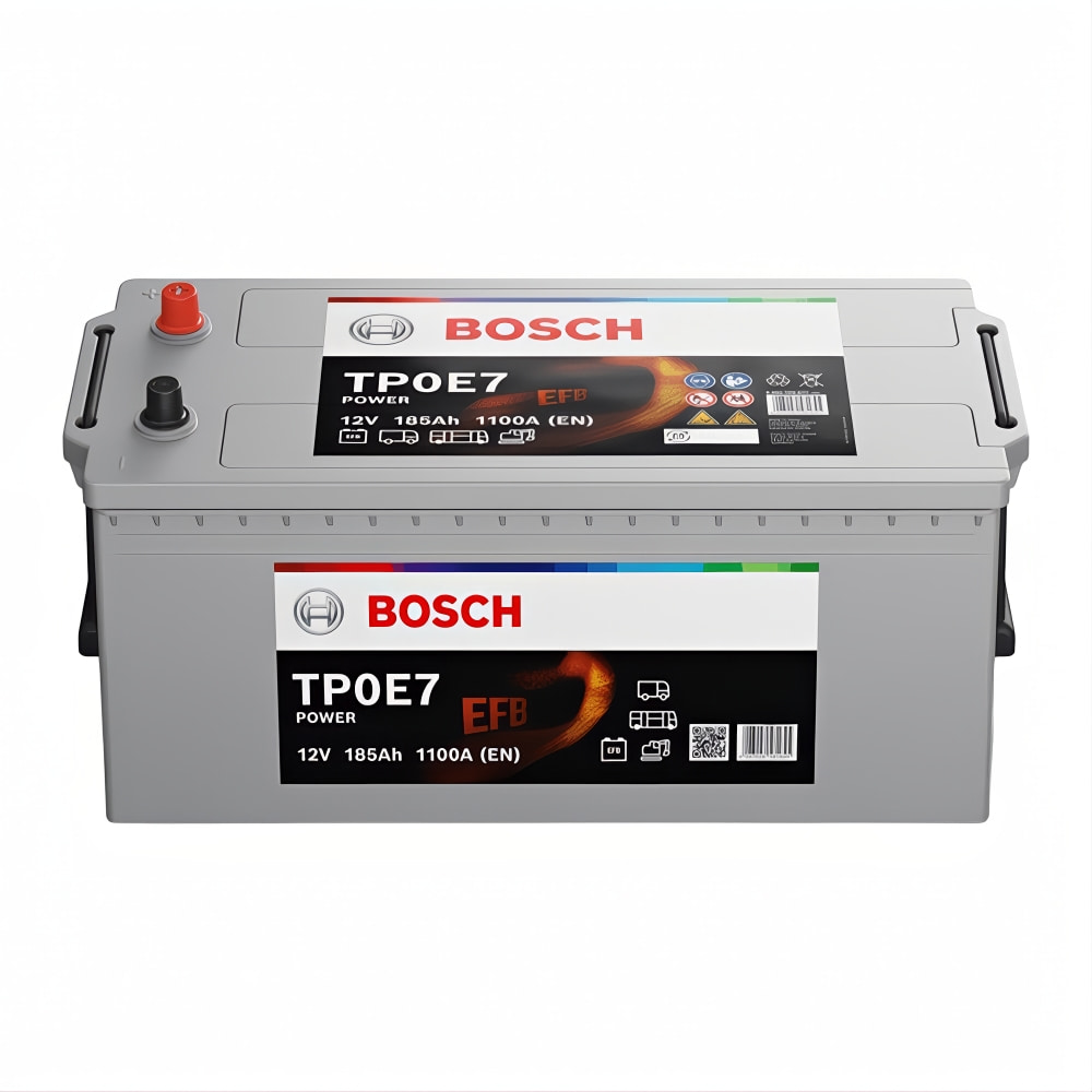 Акумулатор BOSCH POWER EFB 185Ah/1050A L+ TP0E7 предлага изключителна издръжливост и впечатляваща производителност, което гарантира безпроблемно функциониране и дългосрочна надеждност за тежкотоварни автомобили.